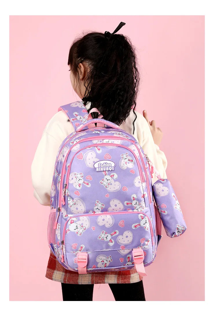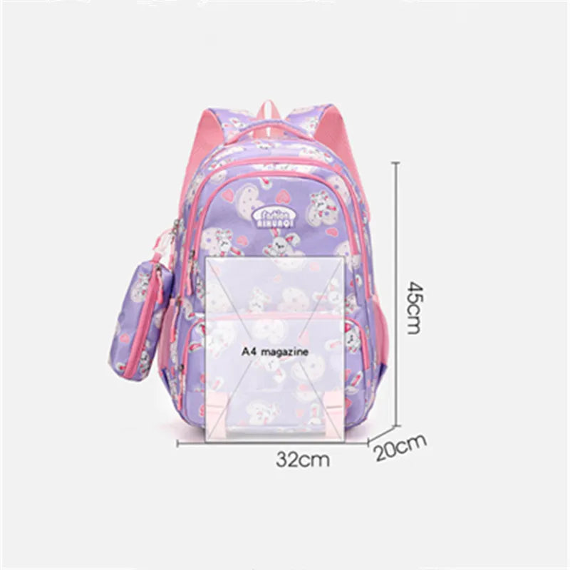 Craquez pour le Cartable Lapin, un sac d’école au design craquant avec ses jolis lapins imprimés 🐇, parfait pour les filles en primaire et au collège. Fabriqué en nylon de haute qualité, ce cartable résistant et imperméable est aussi livré avec une trousse à crayons assortie 🖊️. Disponible en 4 couleurs tendance — bleu, rouge, noir et violet — il allie grande capacité, confort optimal et look unique ✨.