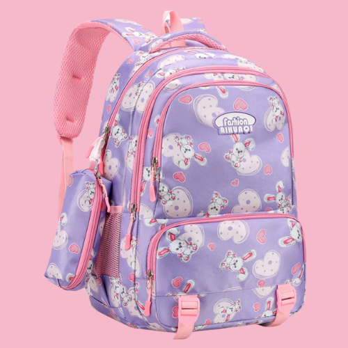 Que votre enfant préfère le bleu classique, le rouge dynamique, le violet doux ou le noir élégant, elle trouvera son bonheur. Le motif lapin imprimé apporte une touche de fantaisie tout en douceur 🐰. C’est le sac parfait pour exprimer sa personnalité tout en étant bien équipée pour l’école.
