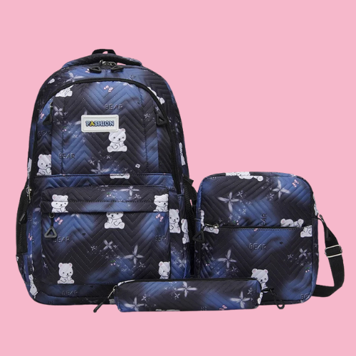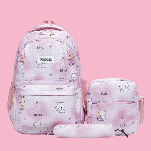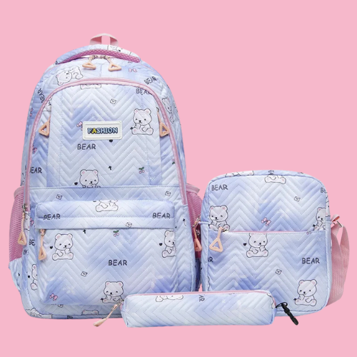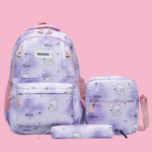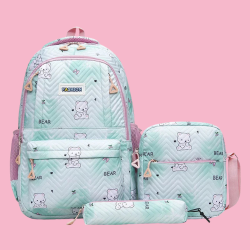 Craquez pour le Cartable Ours, un sac à dos scolaire ultra-mignon, livré avec sa trousse assortie 🖊️ et son sac bandoulière pratique 🎁. Ce cartable imperméable au motif d’adorables ours blancs dessinés ravira toutes les petites filles à la recherche d’un cartable stylé, confortable et bien pensé pour l’école primaire. Disponible en 5 couleurs tendance (bleu, bleu clair, vert, violet et rose), il s’adapte à toutes les envies et toutes les personnalités !