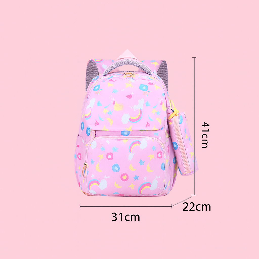 Disponible en rose, violet, bleu, gris et noir, le motif arc-en-ciel ajoute une touche de douceur et de fantaisie au design. Un style apprécié autant en primaire qu’au collège ou au lycée. Le tissu est résistant, imperméable et facile à nettoyer : pratique et stylé en toute circonstance !