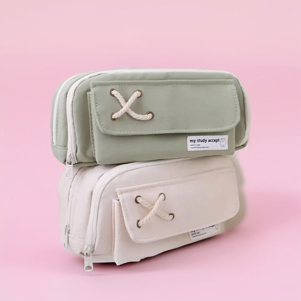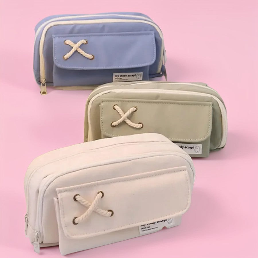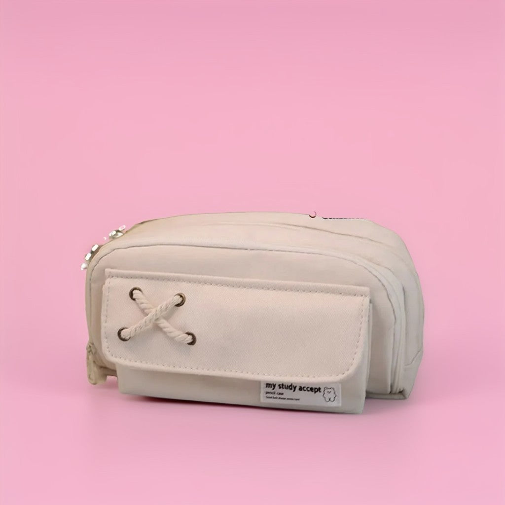 ✨ Trousse Scolaire Fille CM1 - Grande Capacité avec Son Joli Laçage en Croix !